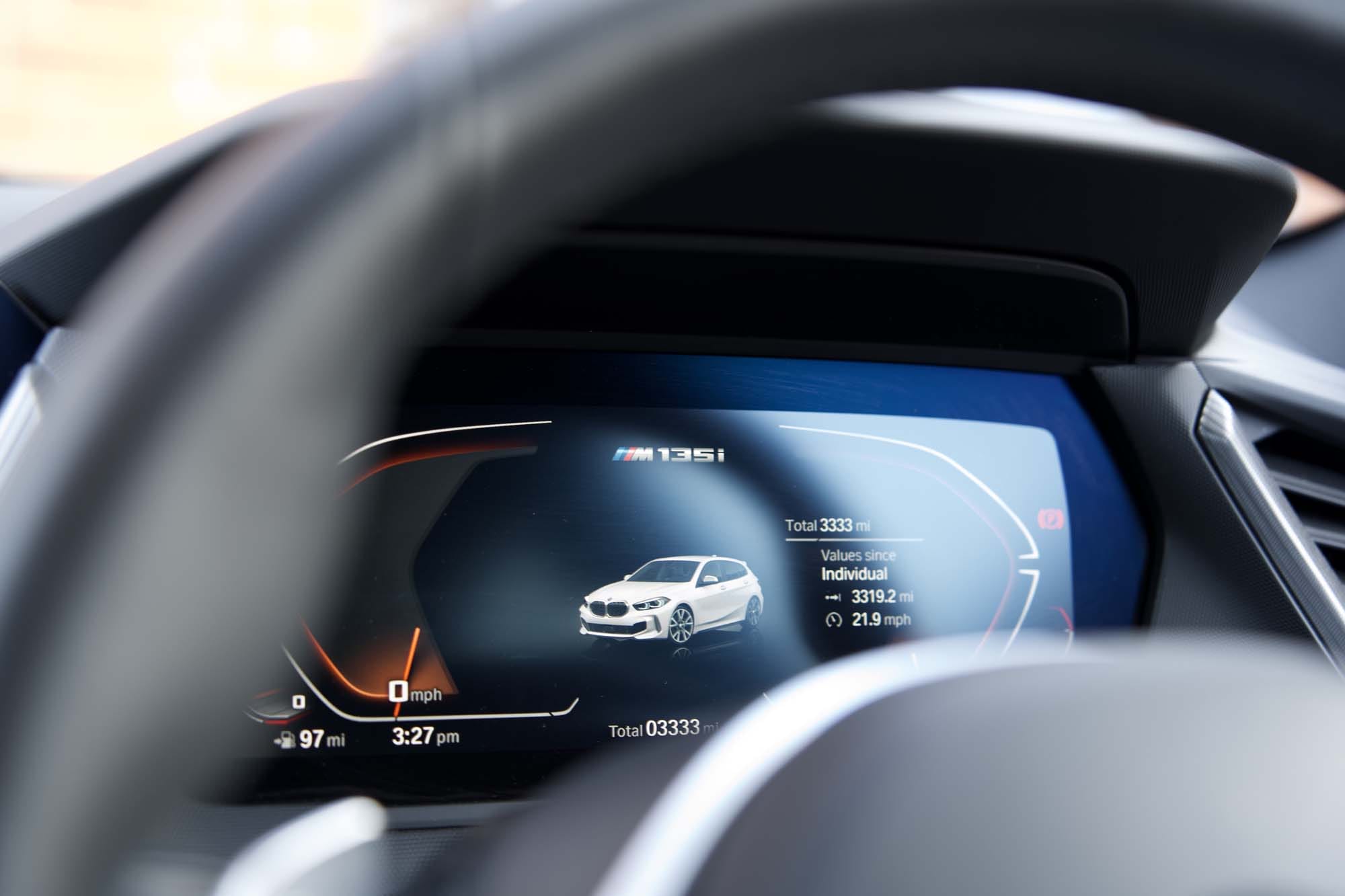 Beneath the bonnet lies BMW’s potent 2.0-litre TwinPower Turbo 4-cylinder engine, producing 306 bhp and 450Nm of torque. Combined with the intelligent xDrive all-wheel-drive system and a quick-shifting 8-speed Steptronic Sport transmission, the M135i sprints from 0–62 mph in just 4.7 seconds.