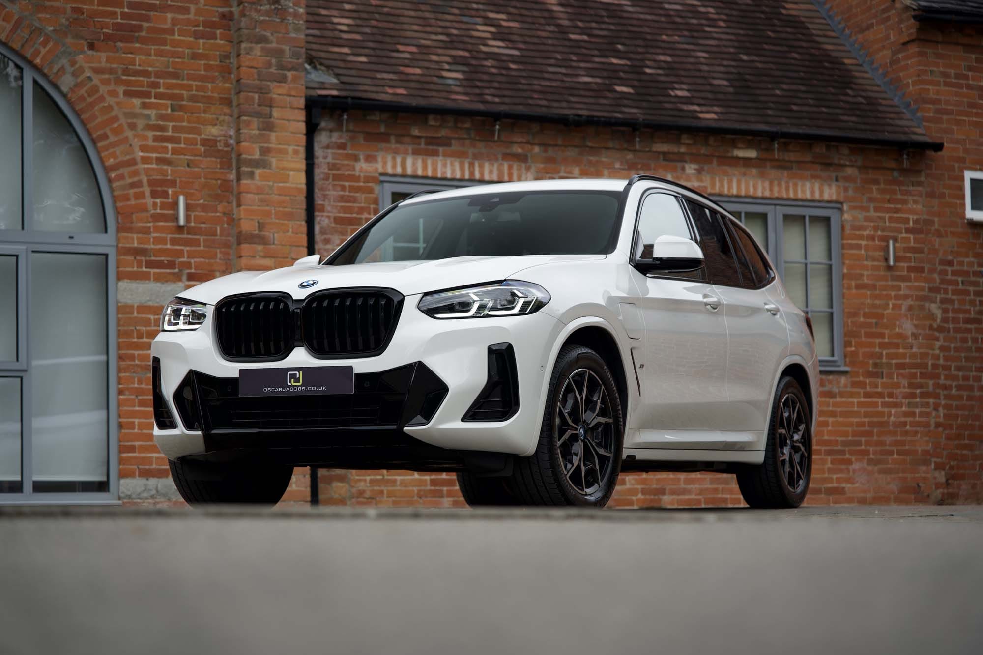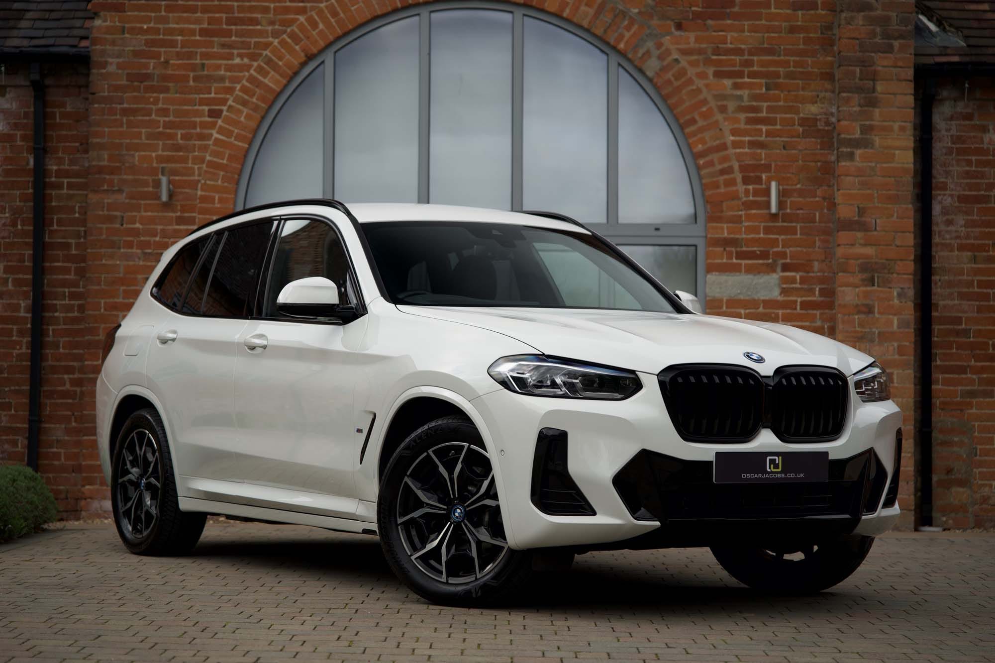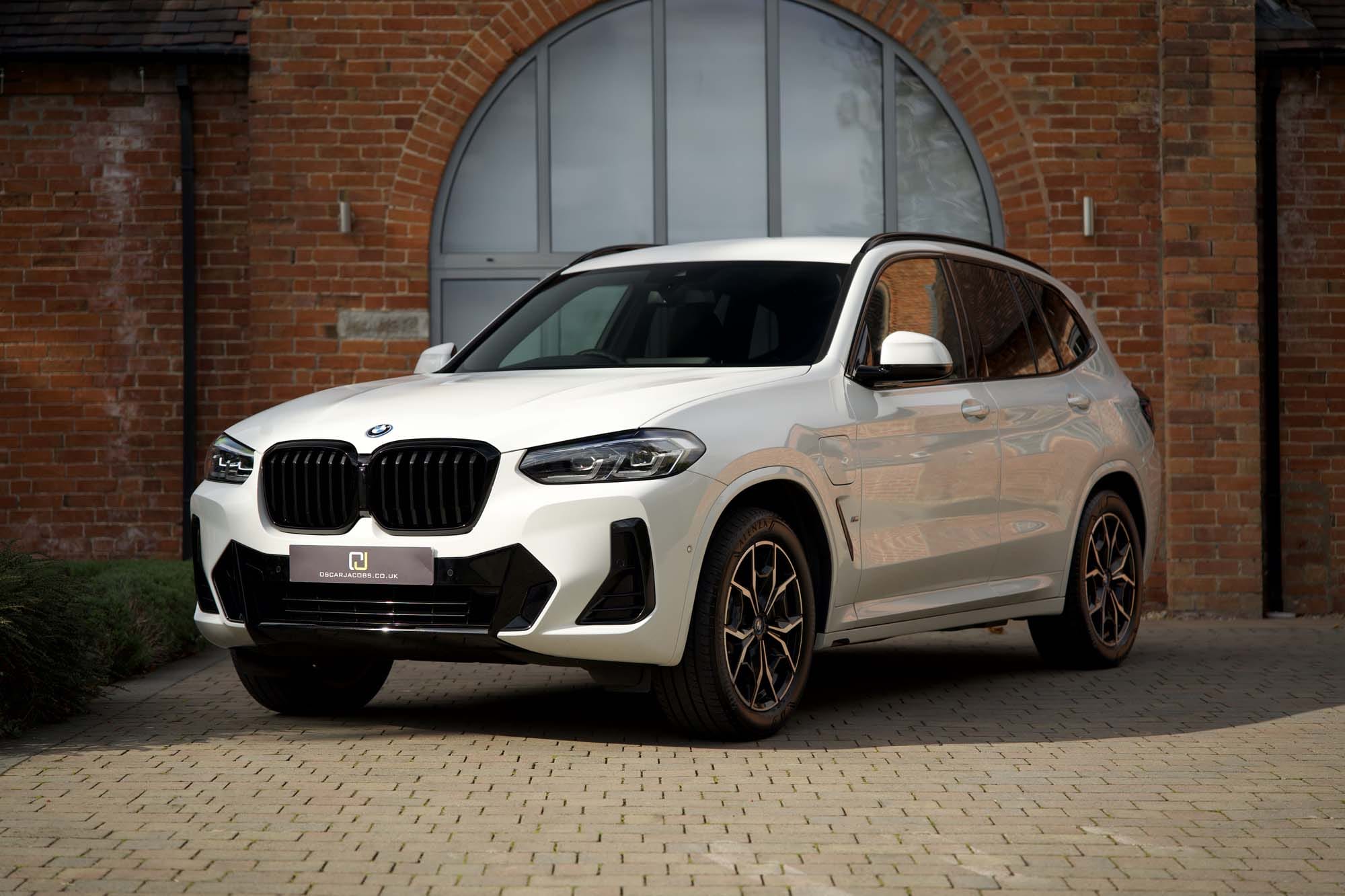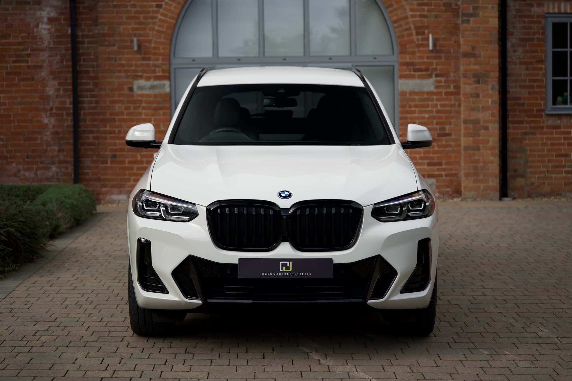Oscar Jacobs are delighted to bring to the market a superb example of a 2023 BMW X3 xDrive 30e M Sport, finished in the lovely colour combination of Alpine White with an interior consisting of Black with Blue Stitching Vernasca Leather. This stunning 1 owner car has covered 20800 miles.