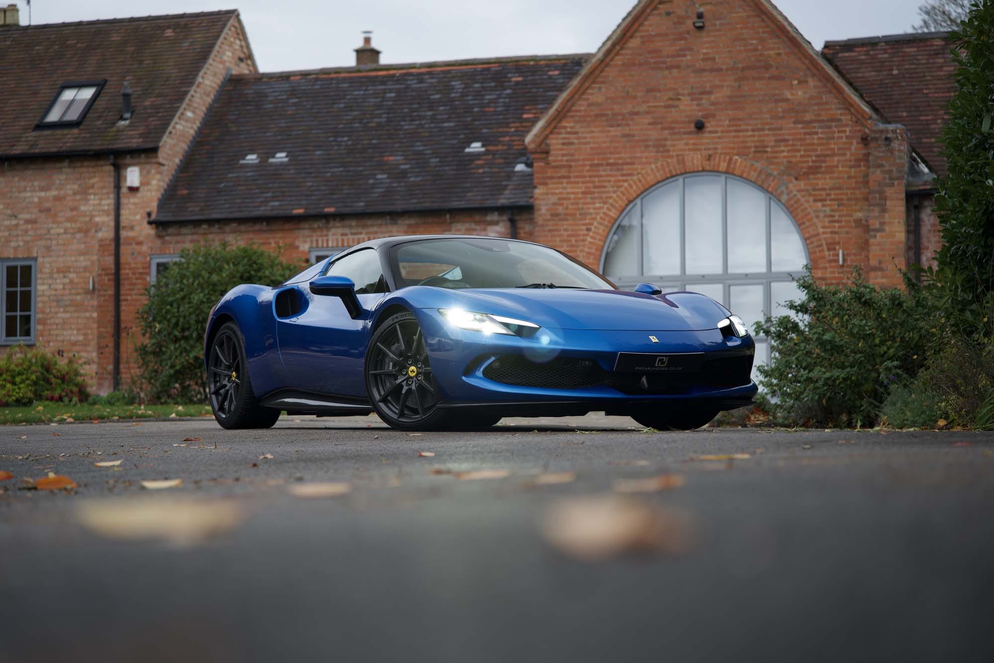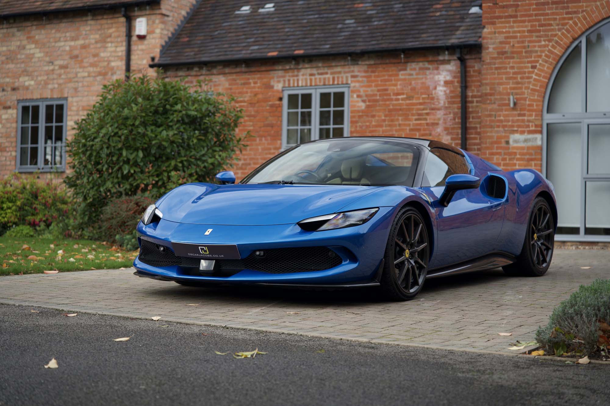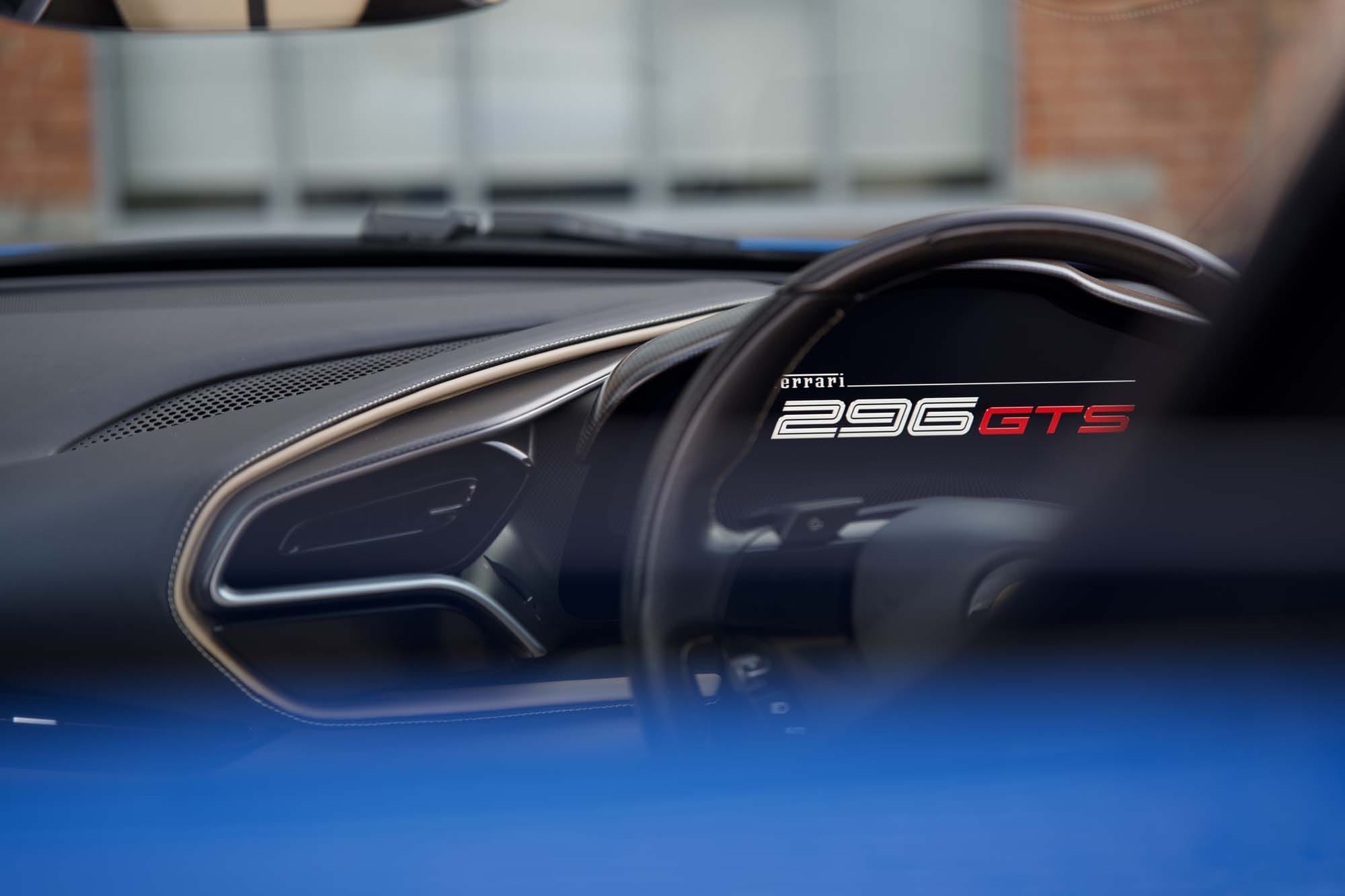Introducing the 2023 Ferrari 296 GTS finished in Blu Corsa with Sabbia Sand interior.