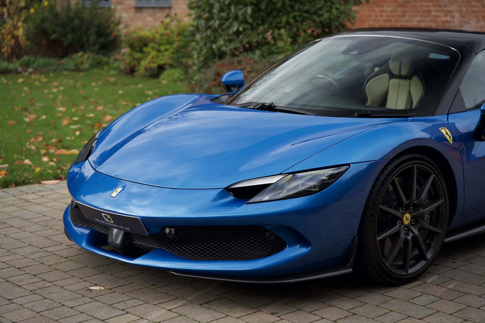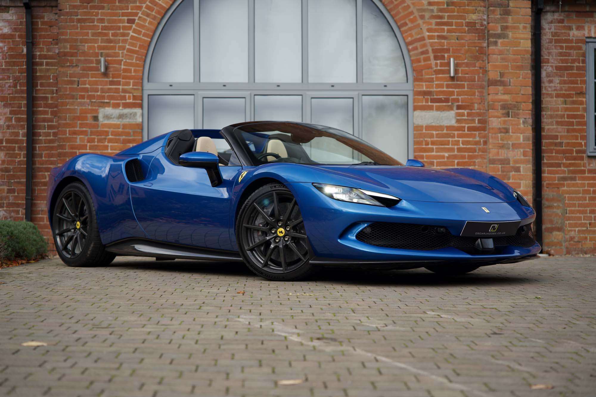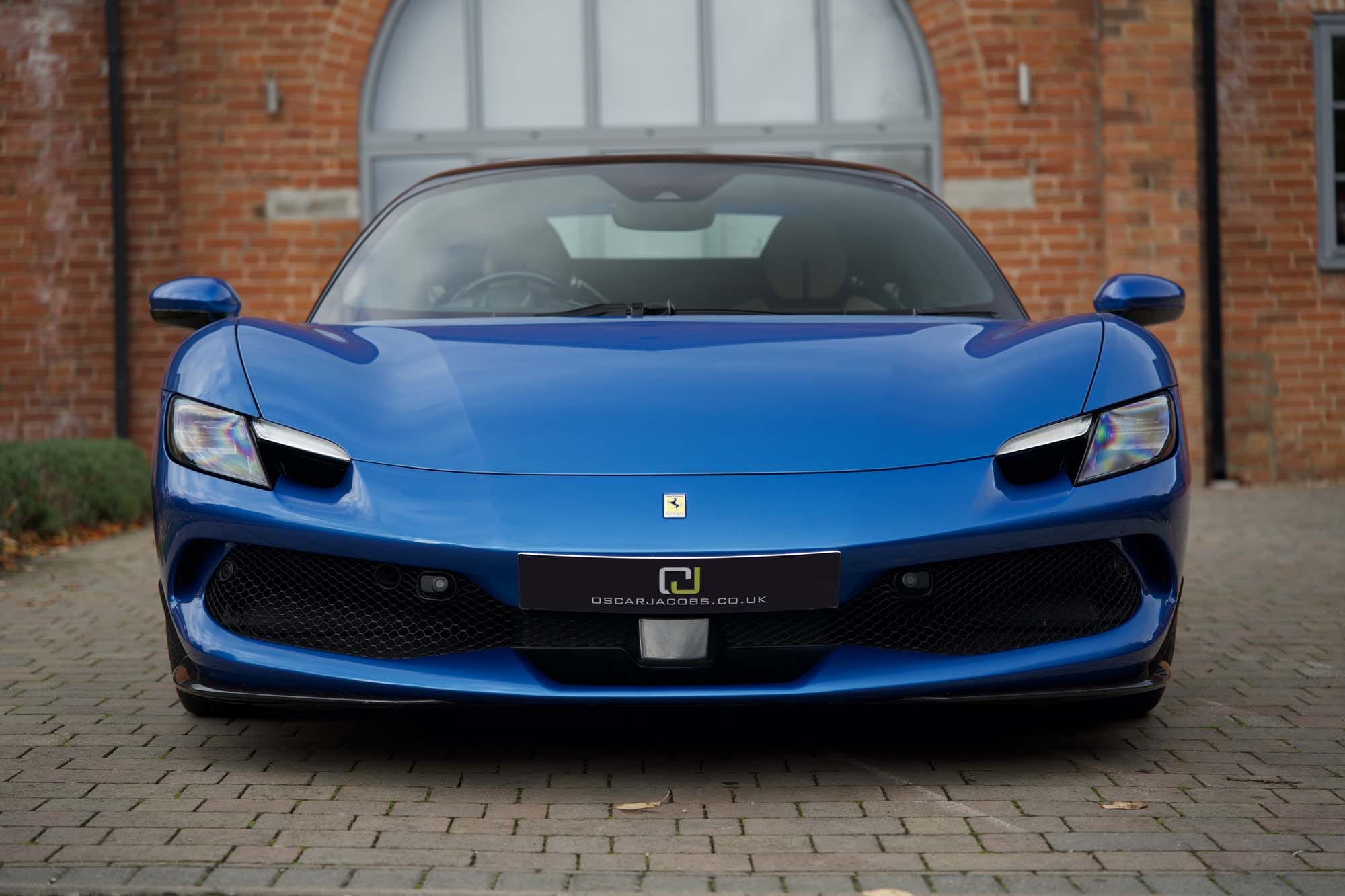 Introducing the 2023 Ferrari 296 GTS finished in Blu Corsa with Sabbia Sand interior.