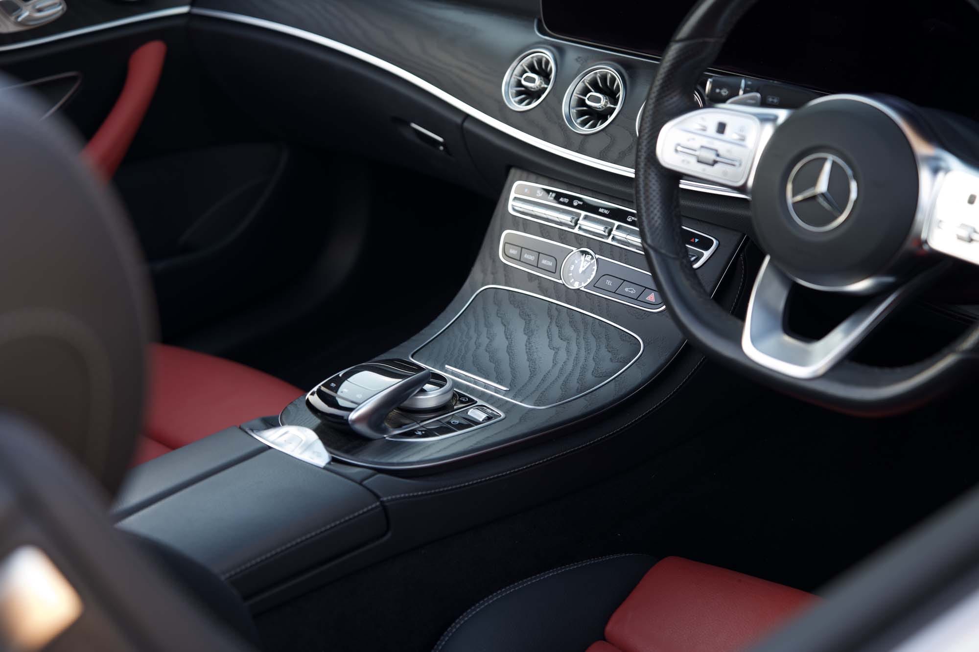 Mercedes-Benz interiors are renowned for their craftsmanship, and the E450 is no exception. The cabin is designed for those who appreciate true executive comfort, featuring plush red leather upholstery, chrome instrument surrounds, a classic analogue clock, and elegant wood trim. Every detail has been thoughtfully considered, creating an environment that feels both indulgent and purpose-built.