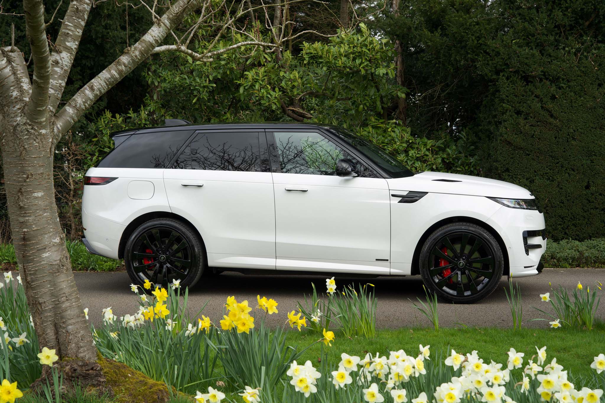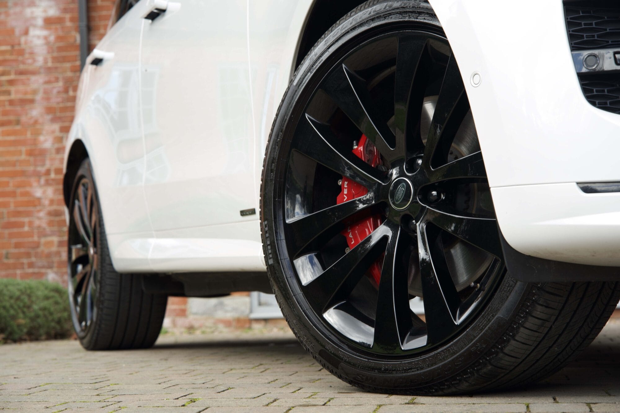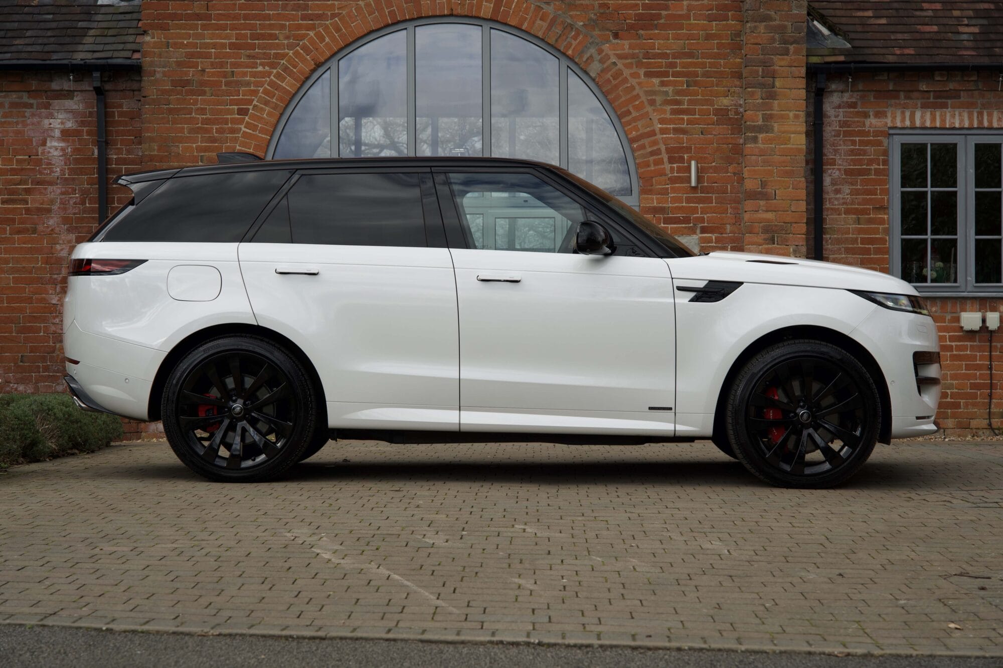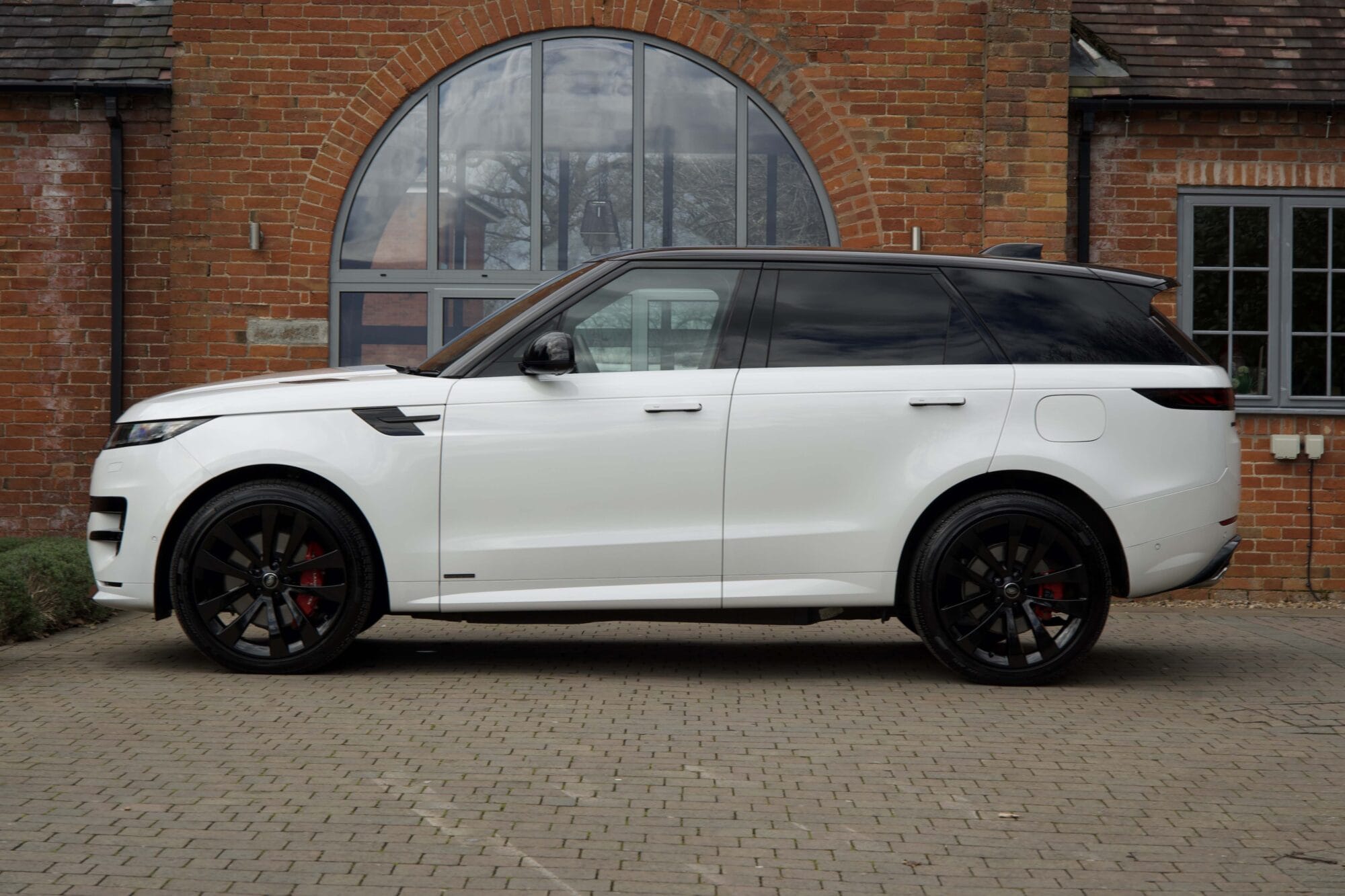 Finished in elegant Ostuni White, this Range Rover Sport is beautifully contrasted by the Black Exterior Pack and is further enhanced by 23″ Gloss Black Alloy Wheels, perfectly complemented by Red Brake Callipers.